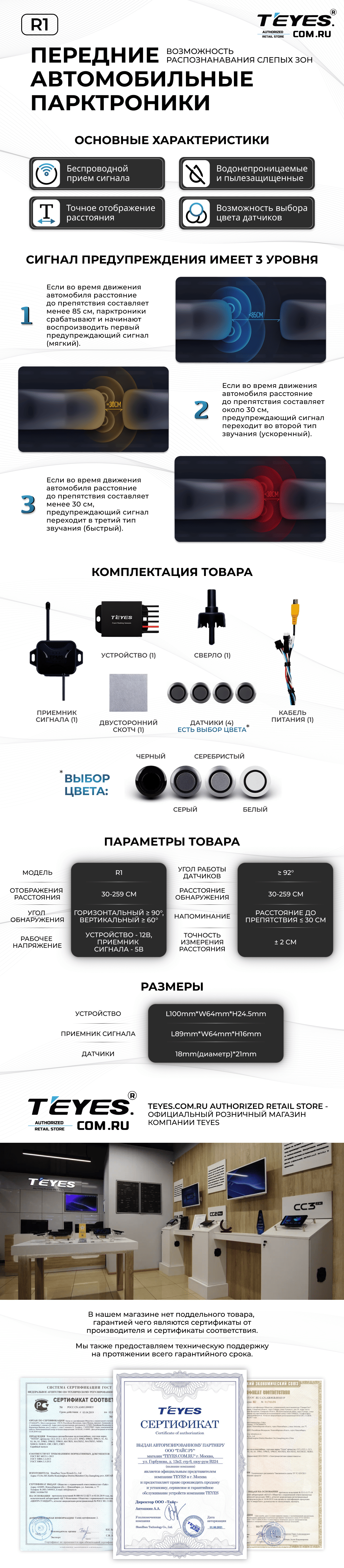 Передние парктроники Teyes R1 для CC4 Pro / CC4 / CC4L / CC3 2K / CC3 / CC3L / CC2 Plus / SPRO Plus / TPRO2 / LUX ONE (Черные) - купить всего за 12 900 руб. в интернет-магазине в Хабаровске Teyes.com.ru. ✓ Самый лучший выбор мультимедиа ✓ Лучшая замена штатному ГУ ✓ Тел. +7 (800) 775-31-74
