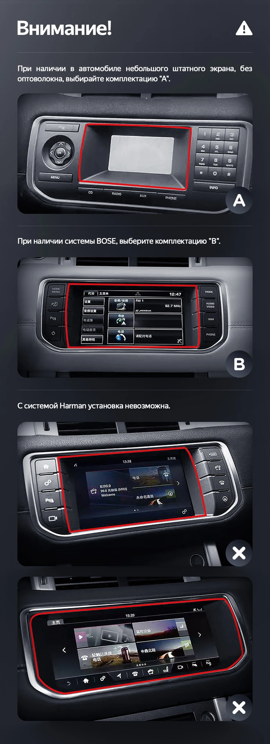 Готовый установочный комплект для магнитолы Land Rover Range Rover Evoque (2011-2018) Тип-B 12,3 дюймов в штатное место, включает переходную рамку и проводку.