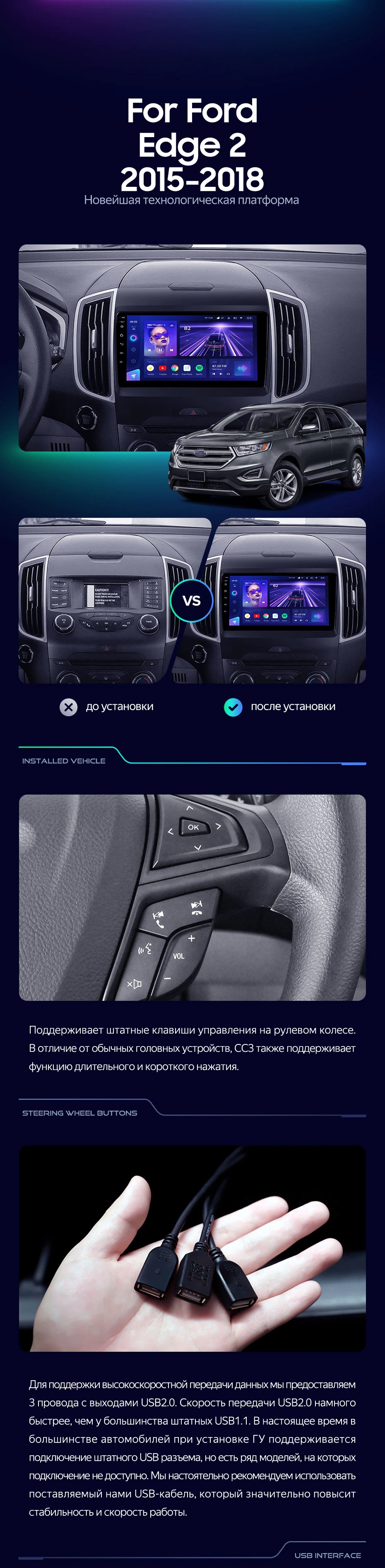 Штатная магнитола Teyes CC3 4/32 Ford Edge 2 (2015-2018) F1 - купить всего за 32 830 руб. в интернет-магазине в Хабаровске Teyes.com.ru. ✓ Самый лучший выбор мультимедиа ✓ Лучшая замена штатному ГУ ✓ Тел. +7 (800) 775-31-74