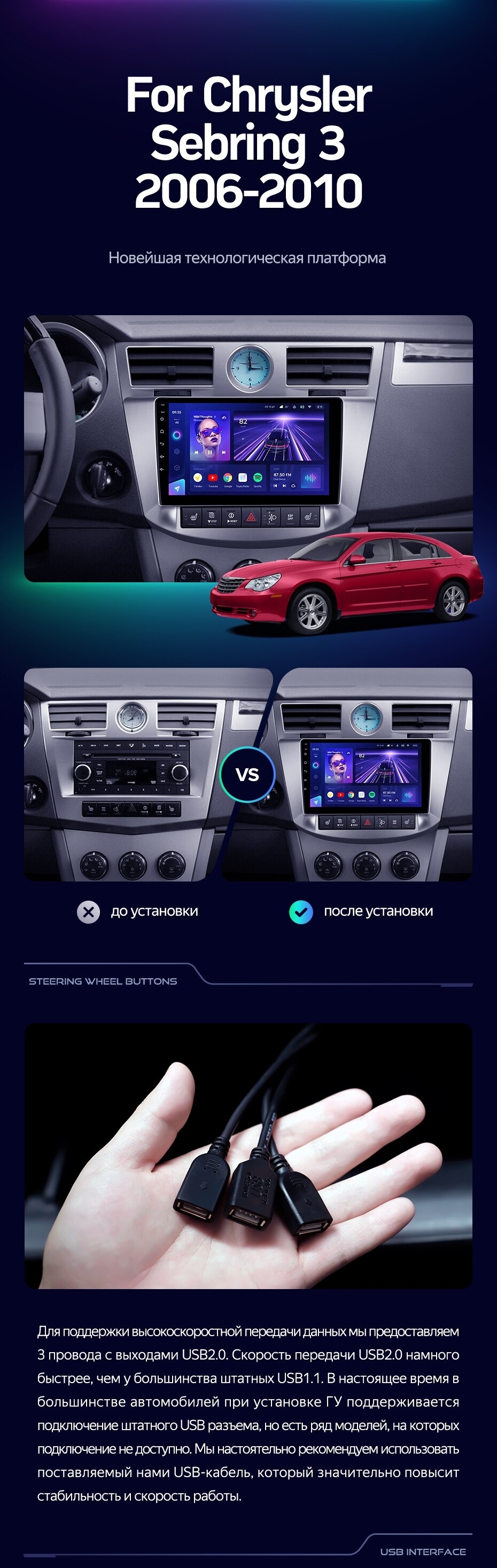 Штатная магнитола Teyes CC3L 4/32 Chrysler Sebring 3 JS (2006-2010) - купить всего за 31 400 руб. в интернет-магазине в Хабаровске Teyes.com.ru. ✓ Самый лучший выбор мультимедиа ✓ Лучшая замена штатному ГУ ✓ Тел. +7 (800) 775-31-74