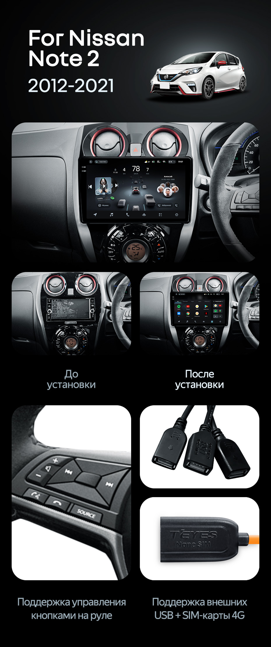 Штатная магнитола Teyes CC4 8/128 Nissan Note 2 E12 (2012-2021) - купить всего за 52 800 руб. в интернет-магазине в Хабаровске Teyes.com.ru. ✓ Самый лучший выбор мультимедиа ✓ Лучшая замена штатному ГУ ✓ Тел. +7 (800) 775-31-74