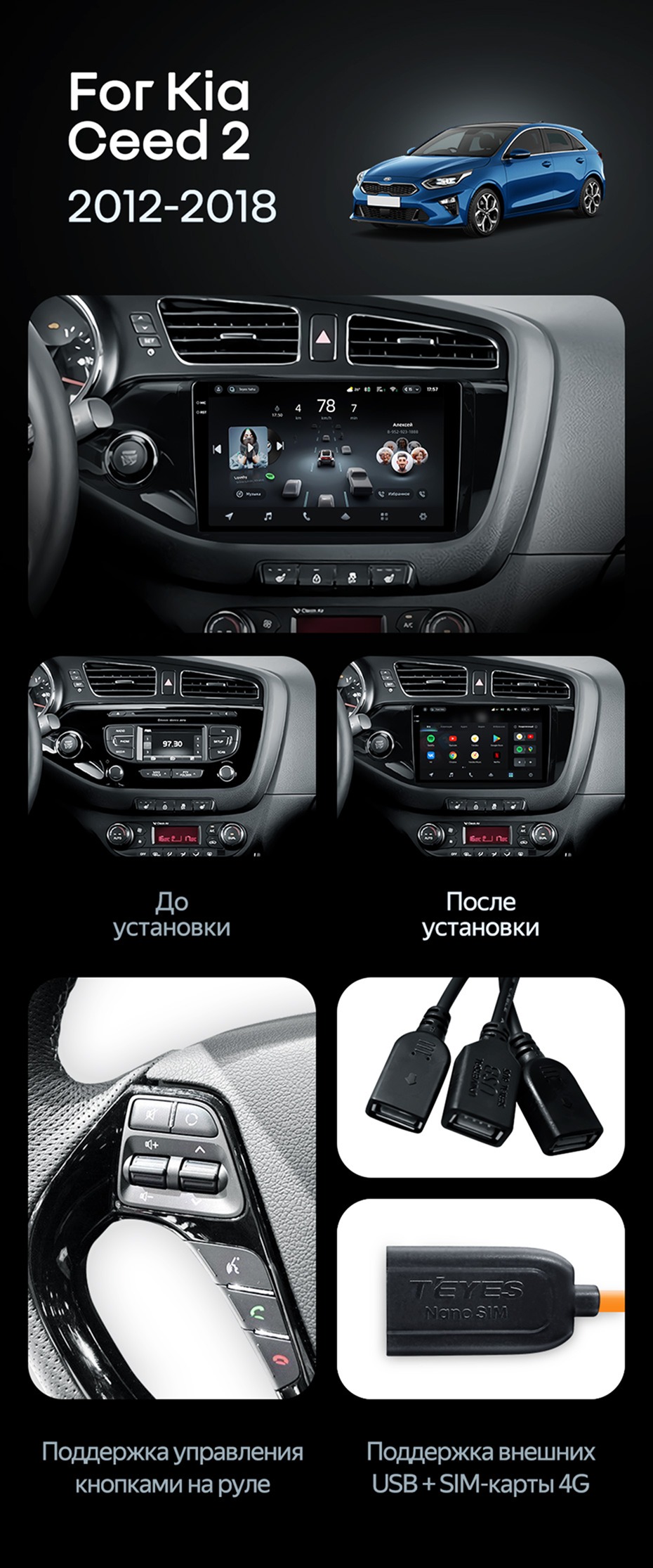 Штатная магнитола Teyes CC4 Pro 12/256 Kia Ceed 2 JD (2012-2018) - купить всего за 68 720 руб. в интернет-магазине в Хабаровске Teyes.com.ru. ✓ Самый лучший выбор мультимедиа ✓ Лучшая замена штатному ГУ ✓ Тел. +7 (800) 775-31-74